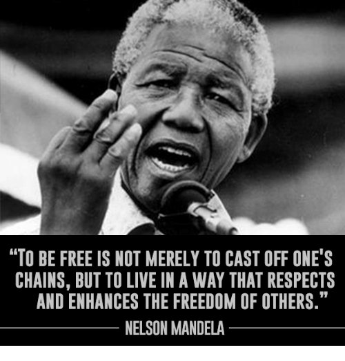 "To be free is not merely to cast off one's chains, but to live in a way that respects & enhances the freedom of others." Mandela