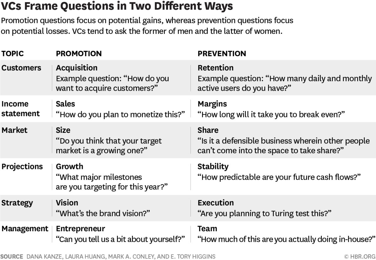 VCs ask biased questions to entrepreneurs: 67% to men are on possible gains, 66% to women are on potential losses. https://hbr.org/2017/06/male-and-female-entrepreneurs-get-asked-different-questions-by-vcs-and-it-affects-how-much-funding-they-get …pic.twitter.com/7NlsHLyJOG