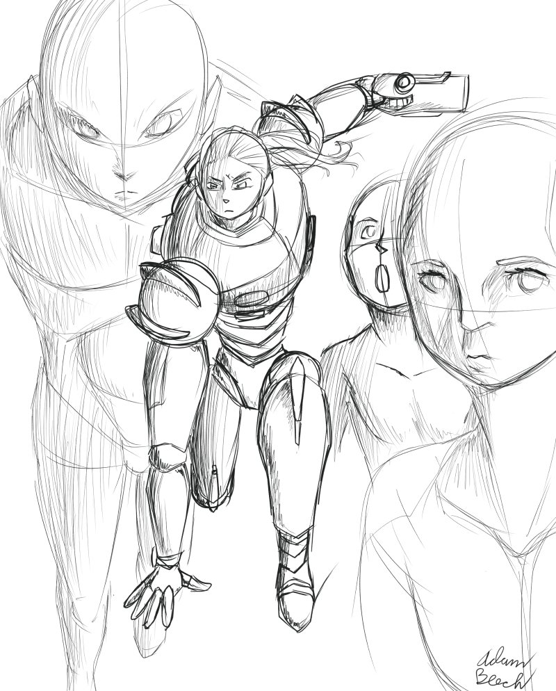 Workin' on soldier design for my comic. The armor may be a bit too high-tech for what I'm going for. I'll figure out what the valve on the sword does later.