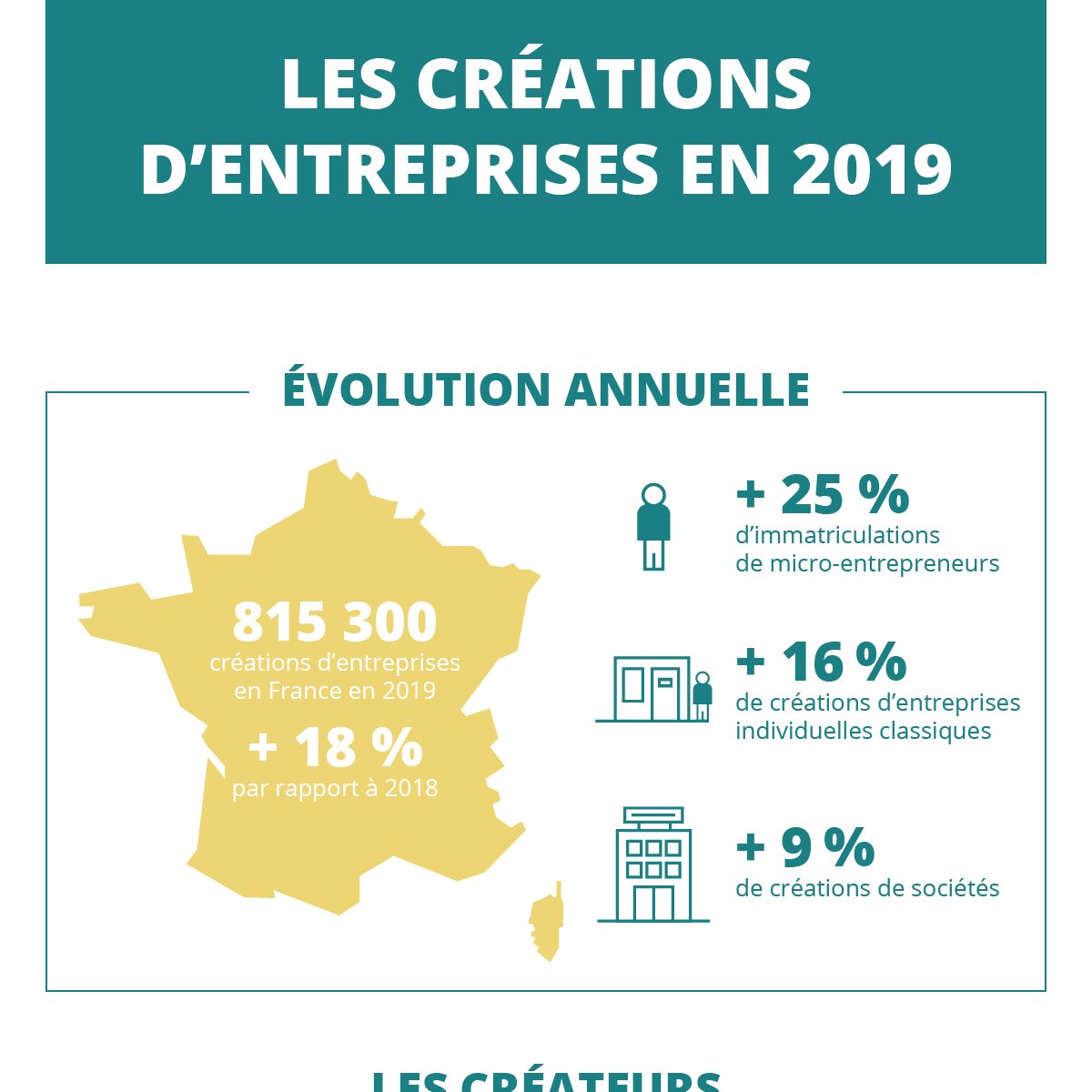 @le_Parisien pour ce décryptage sur la création d'entreprise en France ! Plus de 800 000 entreprises ont été créées en 2019. Une croissance remarquable portée par les#microentrepreneurs !#Entrepreneuriat#Oser#SeLancer#Réussir http://bit.ly/2GzsSLo pic.twitter.com/cGLUcHqeqS