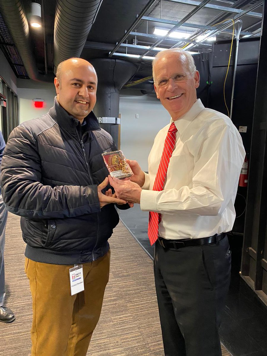 @KWWL who has been the longest sitting TV anchor in#Iowa (46 years!!). He showed us around the studio at their HQs in Waterloo this afternoon on the busy Caucus Day. Gifted him a souvenir from India.pic.twitter.com/nkmo9yLXl8