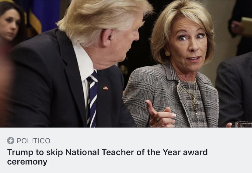 Please excuse me while I take a point of personal privilege here..... https://www.politico.com/story/2019/04/26/trump-skip-national-teacher-of-the-year-award-ceremony-1386862 …pic.twitter.com/ciFqMCW3lp