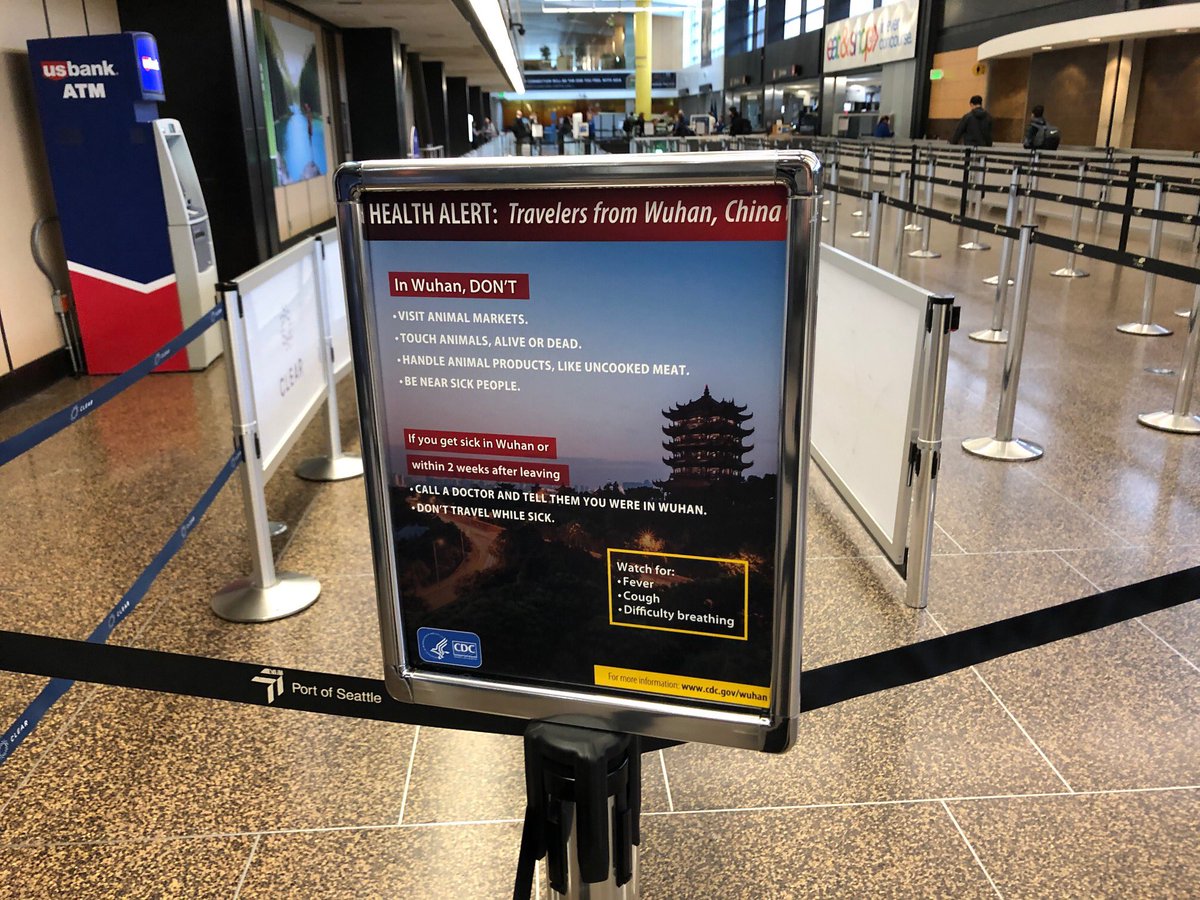 #coronavirus signs now up at the@SeaTacAirport security checkpoint entrances.@CDCgov is also using these inside their customs areas.pic.twitter.com/cmaDHWfuVL