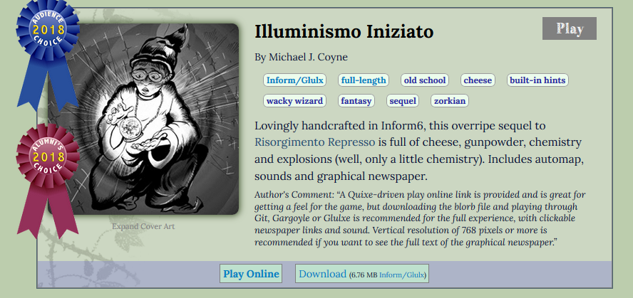 Spring Thing 2018 included the great text adventure Illuminismo Iniziato.