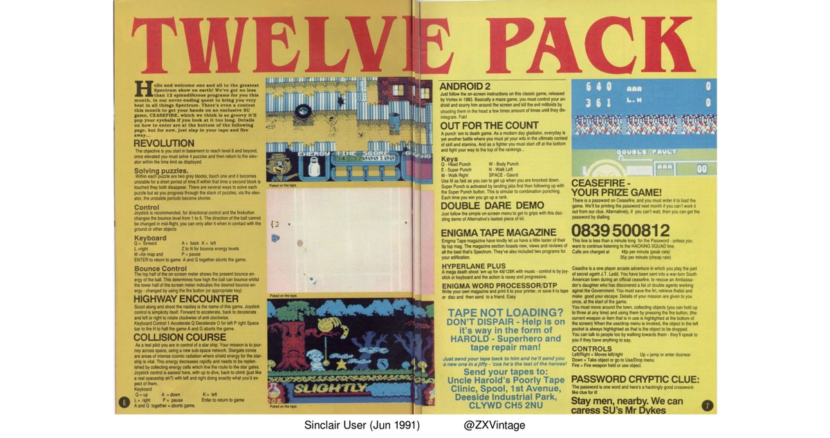 Memories of May 1991: Now Enigma Tape Magazine was something special. The issue given away on the Sinclair User cover tape turned out to be its last one, but not only was it a good read, but it was impressive on a (1/5) #zxspectrum #retrogaming pic.twitter.com/bMcetArPta
