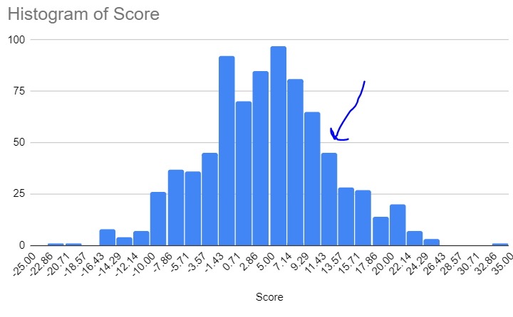 Interesting! About where I expected, honestly. Your description of the 2nd-highest person was plausible enough though that I thought I'd ask. And yes indeed, that's quite a big point gap between #1 and #2! Thanks for the insight :)