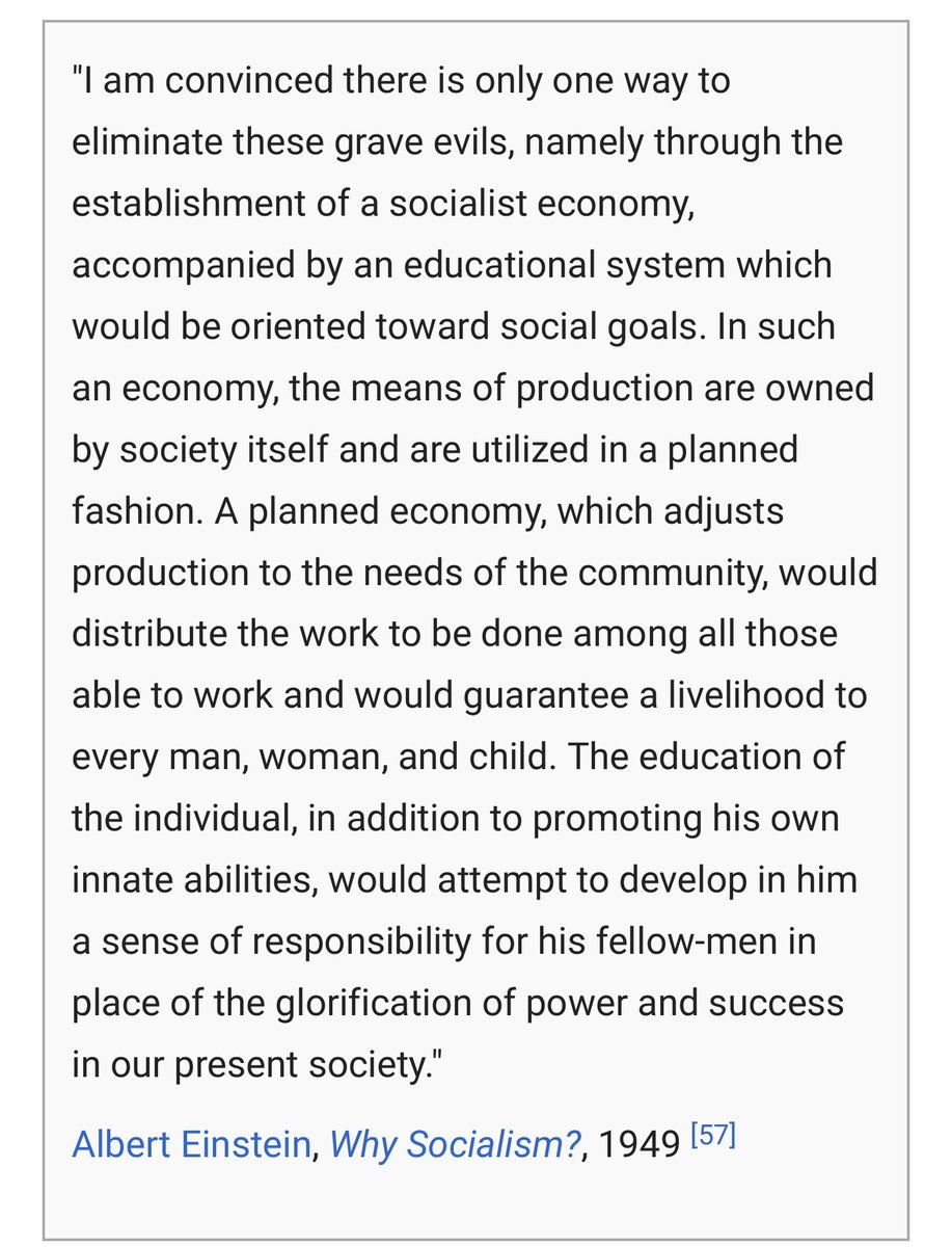 Funfact: Einstein was an outspoken advocate of socialism https://en.m.wikipedia.org/wiki/Political_views_of_Albert_Einstein …pic.twitter.com/gO77y8NYL6