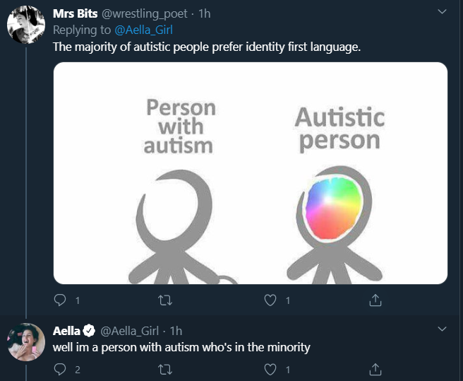 Ha! but Aella wrote she prefered to be called "person with autism" and the only time I wrote it this way was referring to her. I literally saw that comment coming.pic.twitter.com/rbZMSV2tpL