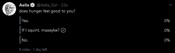 I answered no, but to be fair it doesn't feel bad either. I intermittent fast so I've learned how to ignore hunger; not that I don't feel it, I just ignore it. Kind of makes me feel like an Aes Sedai ignoring heat and cold