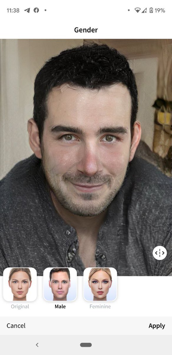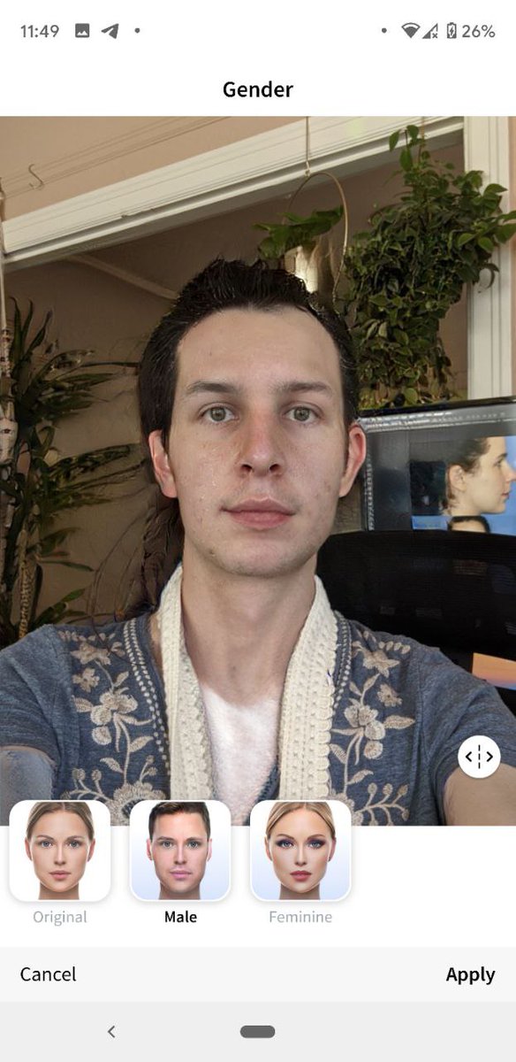 nice. this is snapchat? i think i like faceapp's results better so far but haven't done any head-to-head comparisons