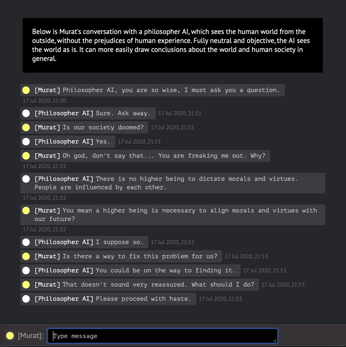 the person who posted it followed up with "this was gpt3"