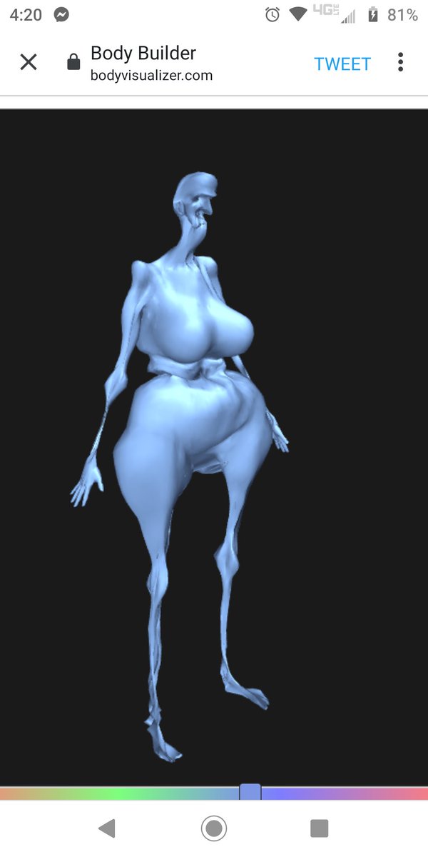 You will notice that I do not have genitals in the rendering. This is because they are retractable. My scrotum opens like a mouth, vomiting my testicles and unleashing the penis in times of arousal or waggish play. My butt also looks better, and I did not measure my hips.pic.twitter.com/GRvIiCXvwp