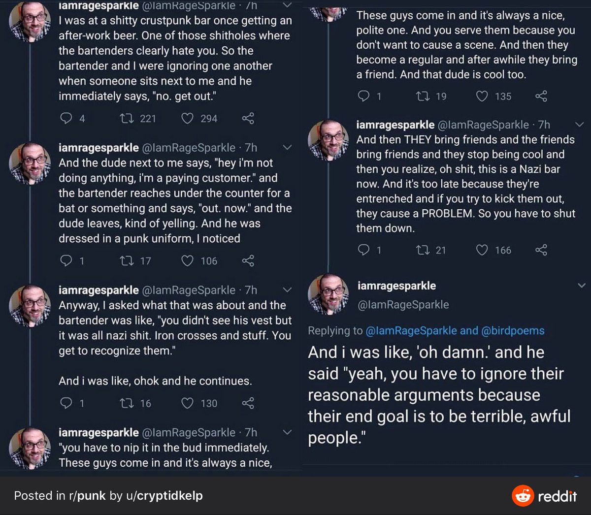 When I was younger, I was much more aggressive, conservative, and hostile. I once asked someone a 'debate' question around a touchy topic, ready to fight; she responded neutrally, well-considered, and asked gentle, clarifying questions. That snapped me out of it - permanently. 1/