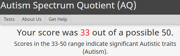 @Aella_Girl i hear u like surveys and polls, do you want to answer one? i'm curious about your resultshttps://psychology-tools.com/test/autism-spectrum-quotient …