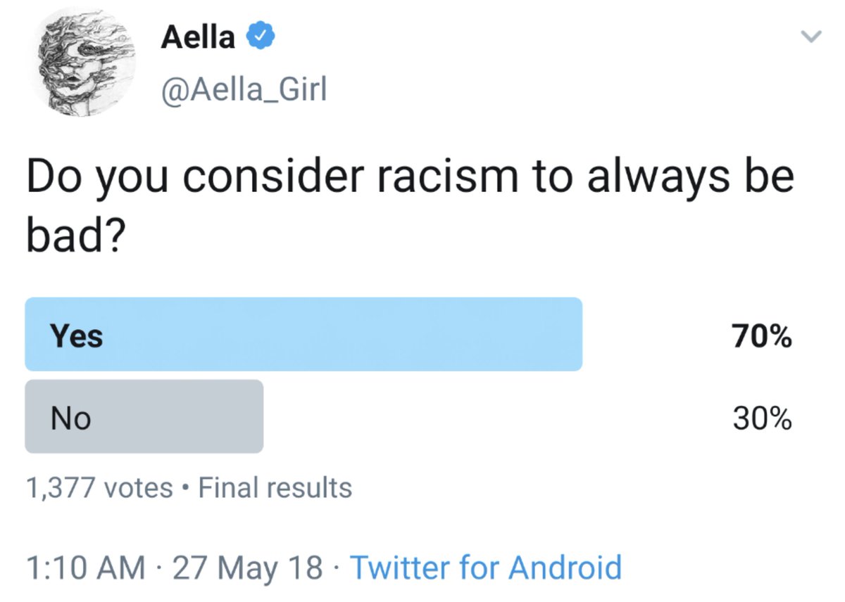 Surprisingly, the amount of people who consider racism to always be bad barely changed over the last two years.pic.twitter.com/OYAESkdoux