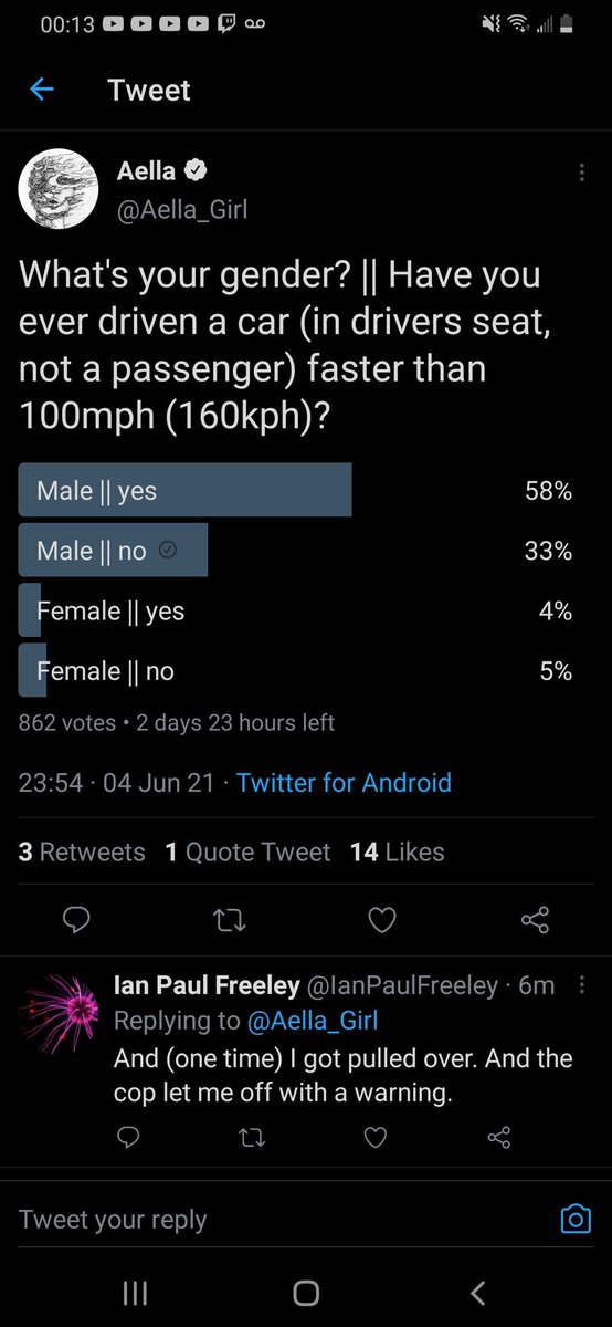 And (one time) I got pulled over. And the cop let me off with a warning.
