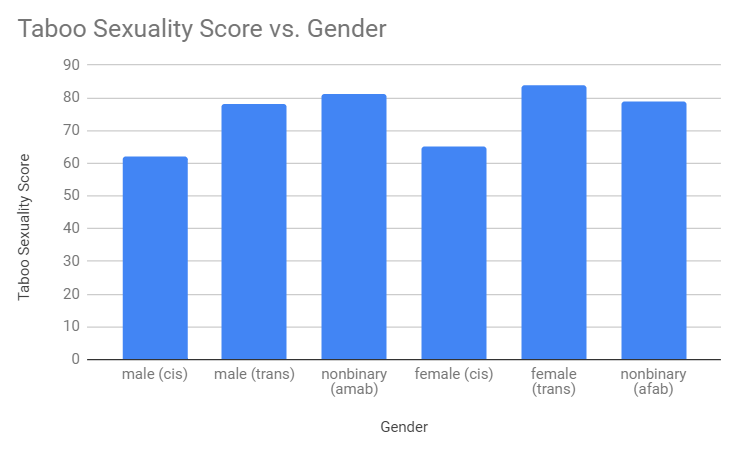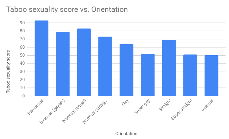 People's "how taboo is your sexuality?" score (a score of what people are into weighted by how taboo the things are), compared to their gender and sexual orientationpic.twitter.com/s600Vx4rTc