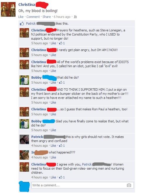 Remember my crazy religious friend? This seriously popped up on my wall today. Suggestions on a comment?pic.twitter.com/7YBAkCSOsQ
