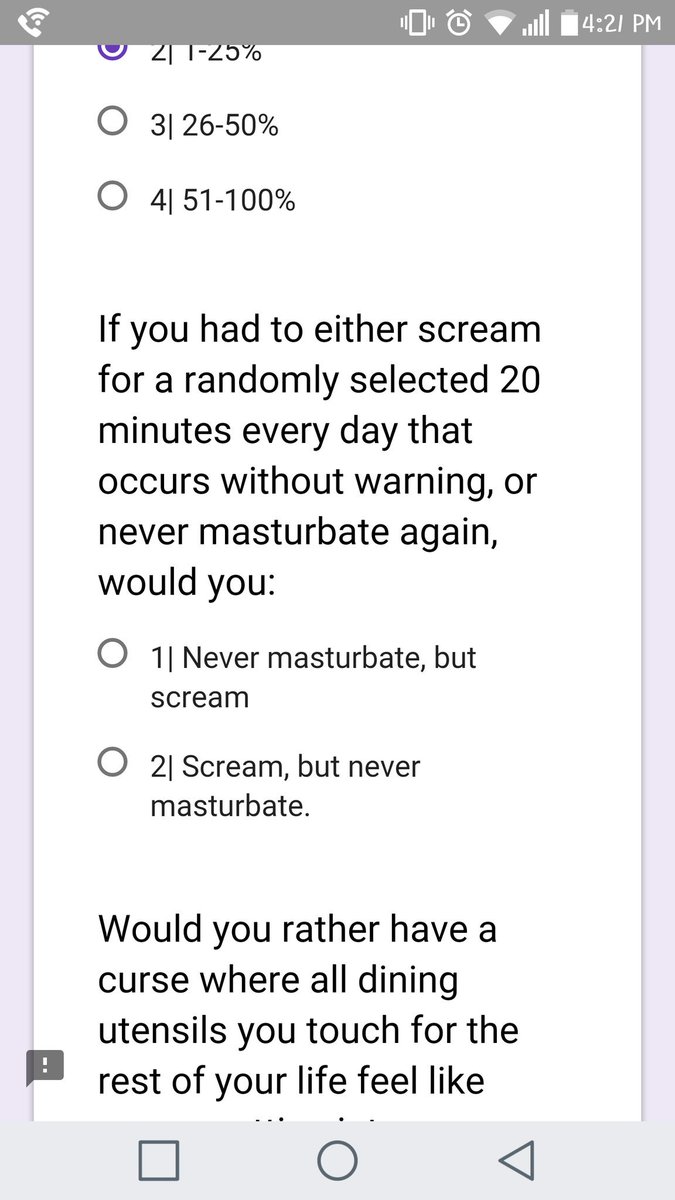 I made a second survey full of more uncomfortable questions. Please help me by filling it out... for science!https://docs.google.com/forms/d/1X1GLQbGzX1IoVBIhn5wRGeTFMPq8YmKHLVbWJ0yMSXY/viewform …