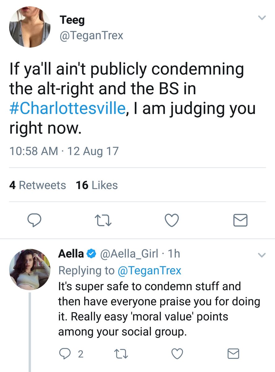 I was dismissing her for actively condemning people who weren't being loud about it. I don't care if you're loud, but i care about judging