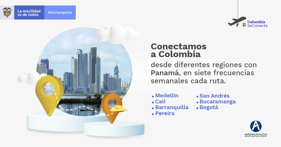 #ColombiaSeConecta ahora con Panamá desde diferentes regiones del país. Incentivamos la competitividad, la reactivación económica y turística de Colombia.pic.twitter.com/plbFaEIyck
