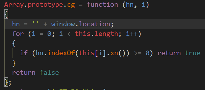 String.prototype .xn: Deobfuscator. Used by Array.prototype .cg and String.prototype .bq. That long string looks random, but look closer, it's the characters a-z, A-Z, 0-9, and _.:,. Also, notice that hi is set to 1 and then never changes.pic.twitter.com/KB0SG4Cfdw