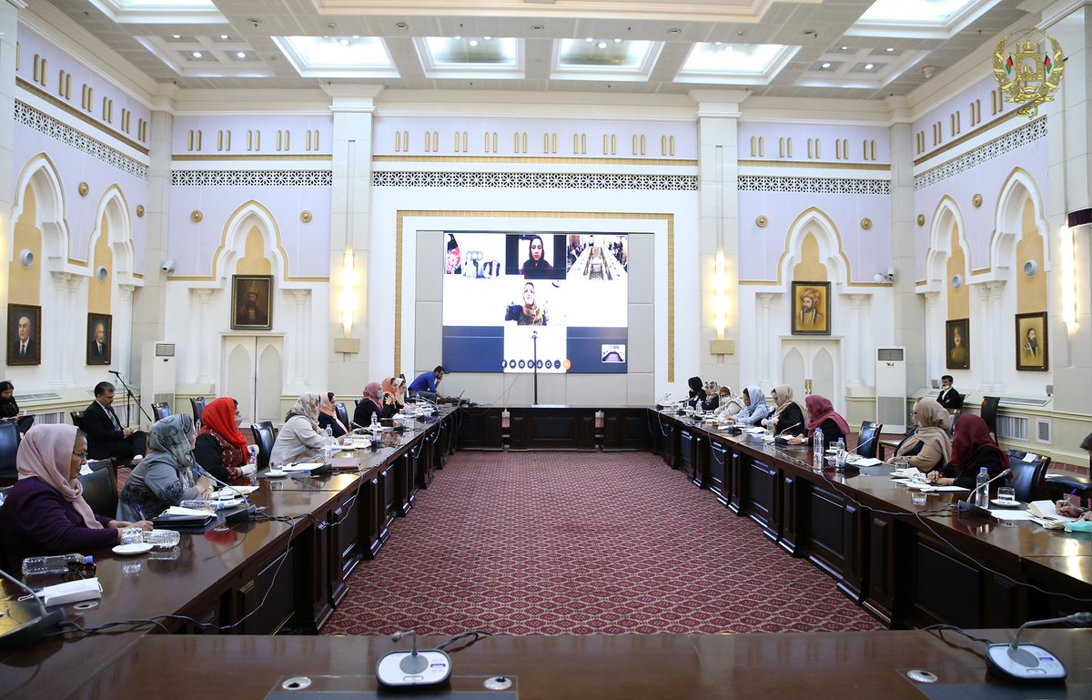 د افغانستان اسلامي جمهوریت جمهوررئیس محمد اشرف غني نن له غرمې مخکې د سولې پالیسي جوړولو کې د ښځو د واحد غږ مشورتي ګروپ سره د ویډیو کنفرانس له لارې د سولې پروسې په اړه په ارګ کې، خبرې وکړې.pic.twitter.com/yOFuNbB4hK