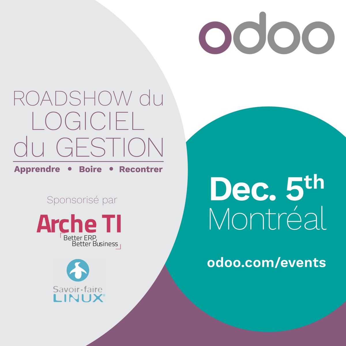 Vous cherchez à développer votre entreprise? Nous sommes fiers d’annoncer notre premier Roadshow Odoo Version 13 à Montréal avec nos partenaires ArcheTI et Savoir Faire! Inscrivez-vous ici et découvrez les moyens de développer votre entreprise. http://bit.ly/2LkGpsW pic.twitter.com/2RJvFHcQLu