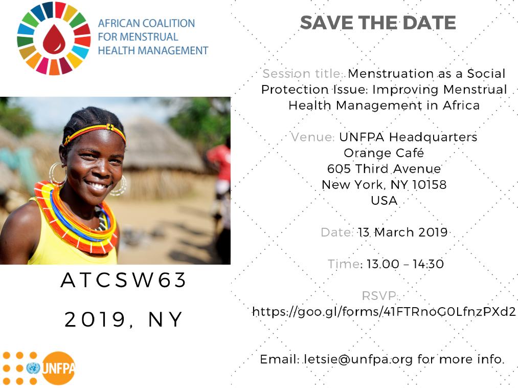 #CSW63? We are excited to let you know that@AfriCoMHM will be hosting a side event at the@UNFPA Orange Cafe on 13 March at 13h00-14h30