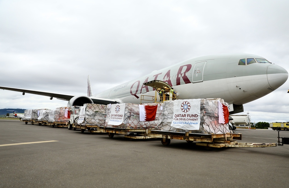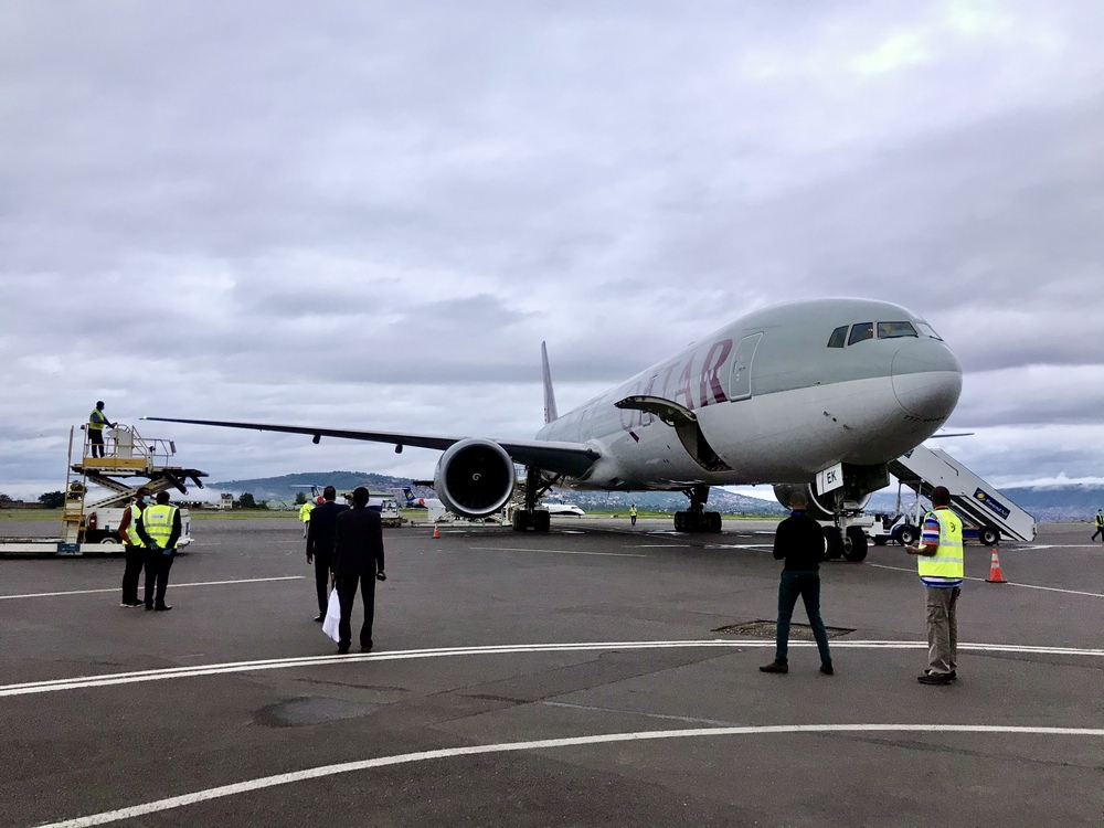 Seems #Africa is only surviving on aid: Qatar Airways, carrying 15 tons of medical supplies for the fight against COVID-19, lands at Kigali International Airport this morning. This is donation by the Emir of Qatar, Tamim bin Hamad Al Thani, to Rwanda.pic.twitter.com/F6lVqFHJHT