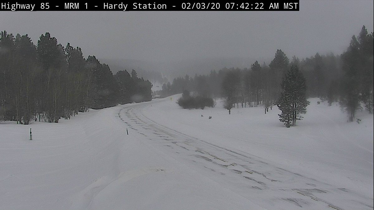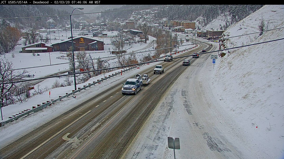 #WYwx into southwest#SDwx. Slippery roads. Slow down. Take it easy if you have to travel. Images courtesy@SouthDakotaDOT@WYDOT_Northeast Deadwood, Fairburn, Hardy Station, Belle Fourche WYpic.twitter.com/73sJ1Eir0a