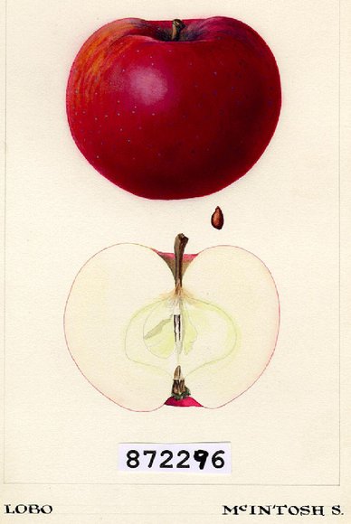Documentation of the new Lobo apple variety (McIntosh cross-breed), using watercolour paint (1938). Arthur Kellett, botanical artist, CEF. Explore The Art of Science http://ow.ly/DyAS30dpDrJ pic.twitter.com/411TtVhajg