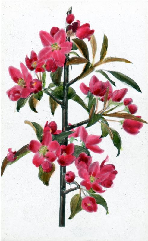 Rosybloom crabapple flowers, date unknown (post 1933). Arthur Kellett, botanical artist, CEF. Explore The Art of Science http://ow.ly/DyAS30dpDrJ pic.twitter.com/Uw0HOu4fLR