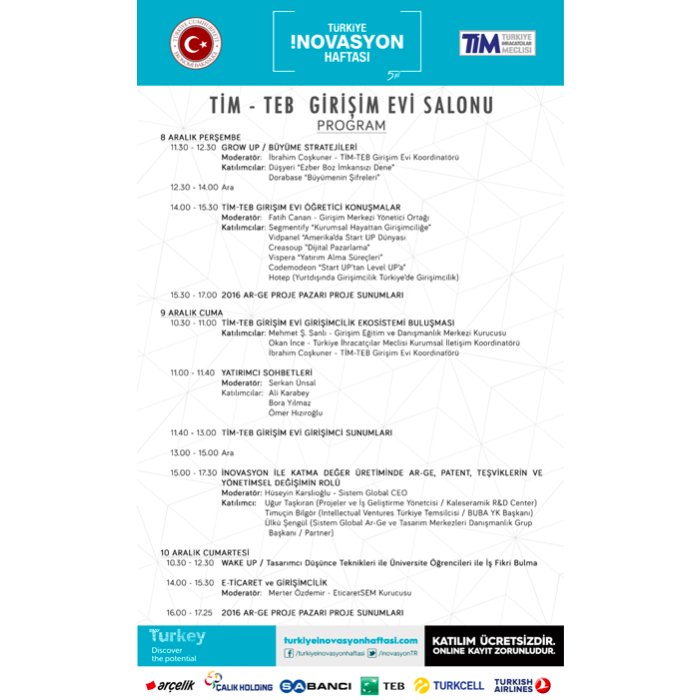 #İnovasyonHaftası’nda, TİM-TEB Girişim Evi eş zamanlı etkinliklerini kaçırmayın.@TEBleGirisim http://www.turkiyeinovasyonhaftasi.com/online-kayit/ pic.twitter.com/1qP1UPYUWL