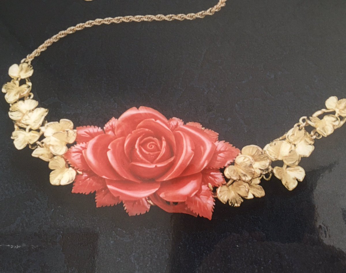 #jewelry is made by an#artist, Michie Sento, in Kochi#Japan.#Red#coral is#carved into a#rose, and#K18#gold leaves are linked each other to fit on your neck. Golden leaves with spaces have an#attractive volume.#oneofakind#preciouscoral#necklacepic.twitter.com/PArIMQcjFi