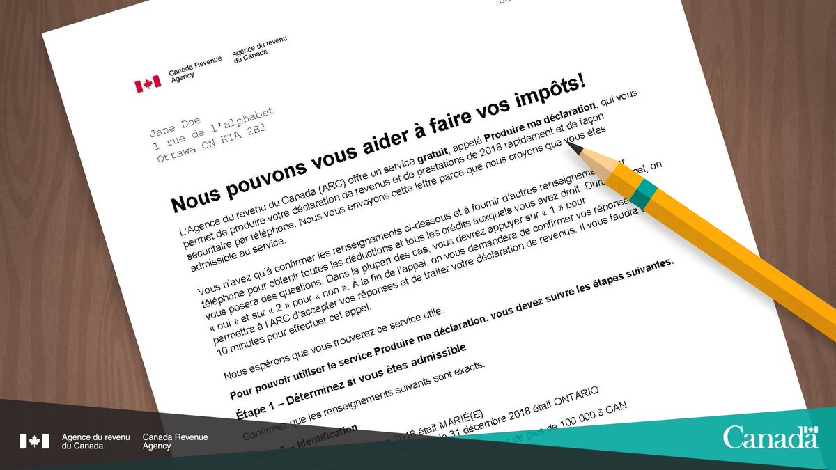 Vous ou l’un de vos proches avez reçu une lettre concernant notre service Produire ma déclaration? Parfait! Vous pouvez vérifier que la lettre vient bel et bien de nous au 1-800-959-7383. http://ow.ly/9x4f50rmgOs pic.twitter.com/v2wYgKrUzn