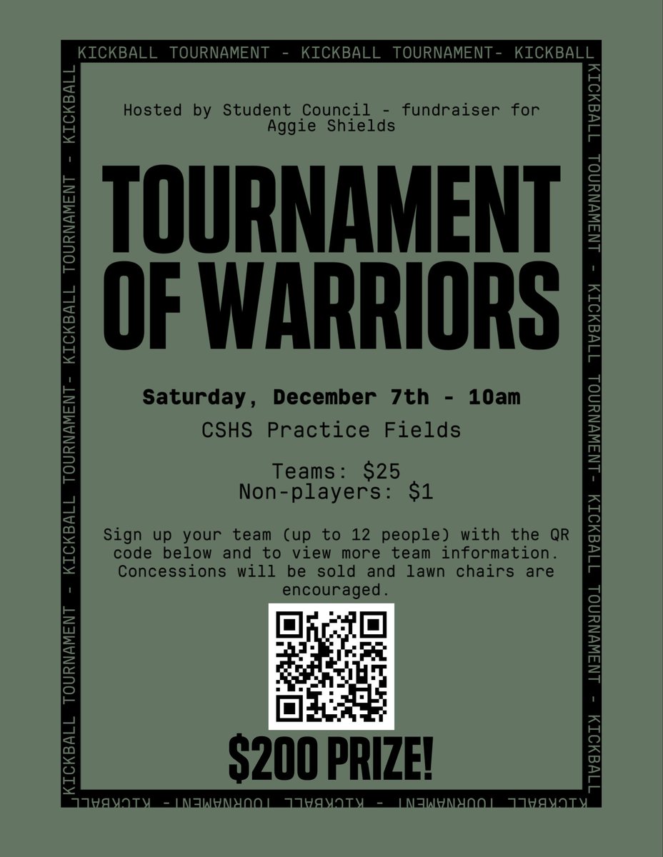 Tomorrow is the day! Join Aggie Shields and CSHS Student Council on their kickball tournament of Warriors! All proceeds go to Aggie Shields which helps us provide more textbooks for our student veterans! Sign up and be on a team or just show up and support :-)!pic.twitter.com/5rlp5mirxf