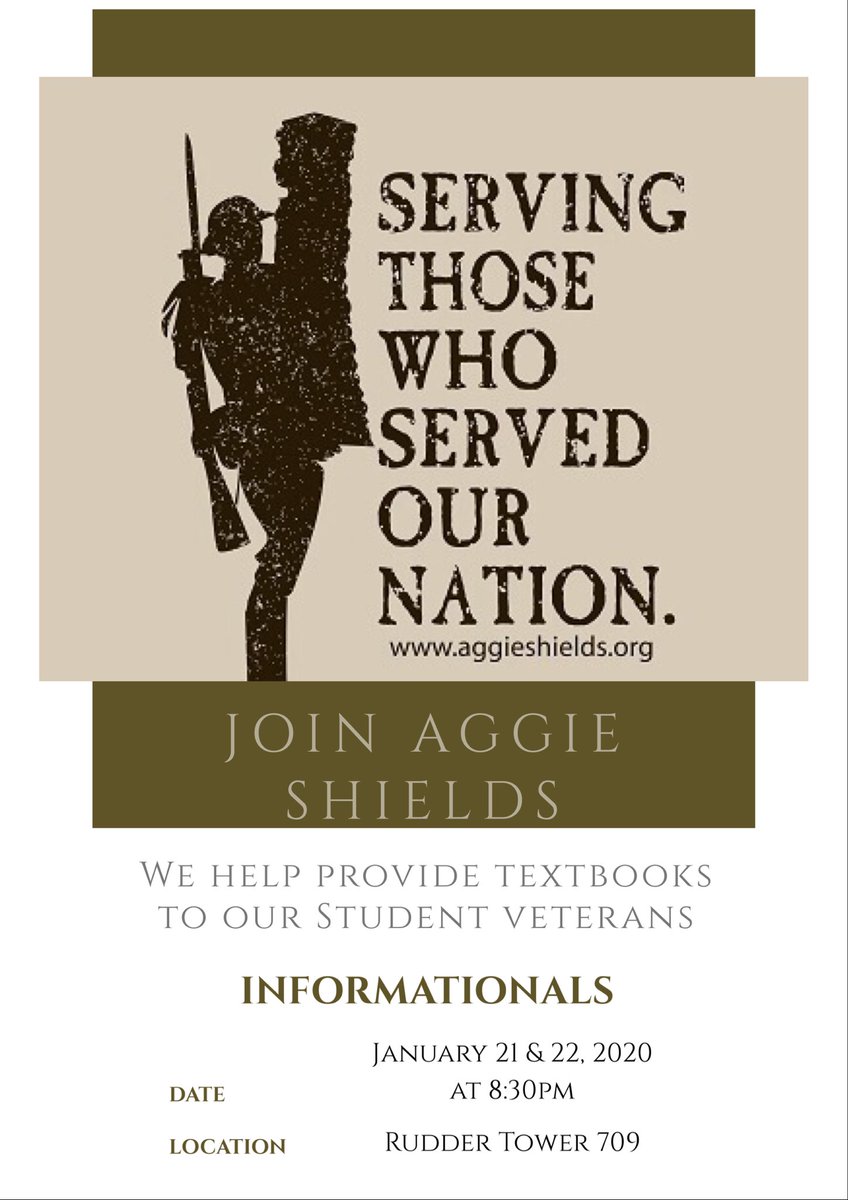 Aggie Shields would like the thank our student veterans, veterans in the BCS area, and across the nation for the service they have done for our country. Happy Veterans Day!