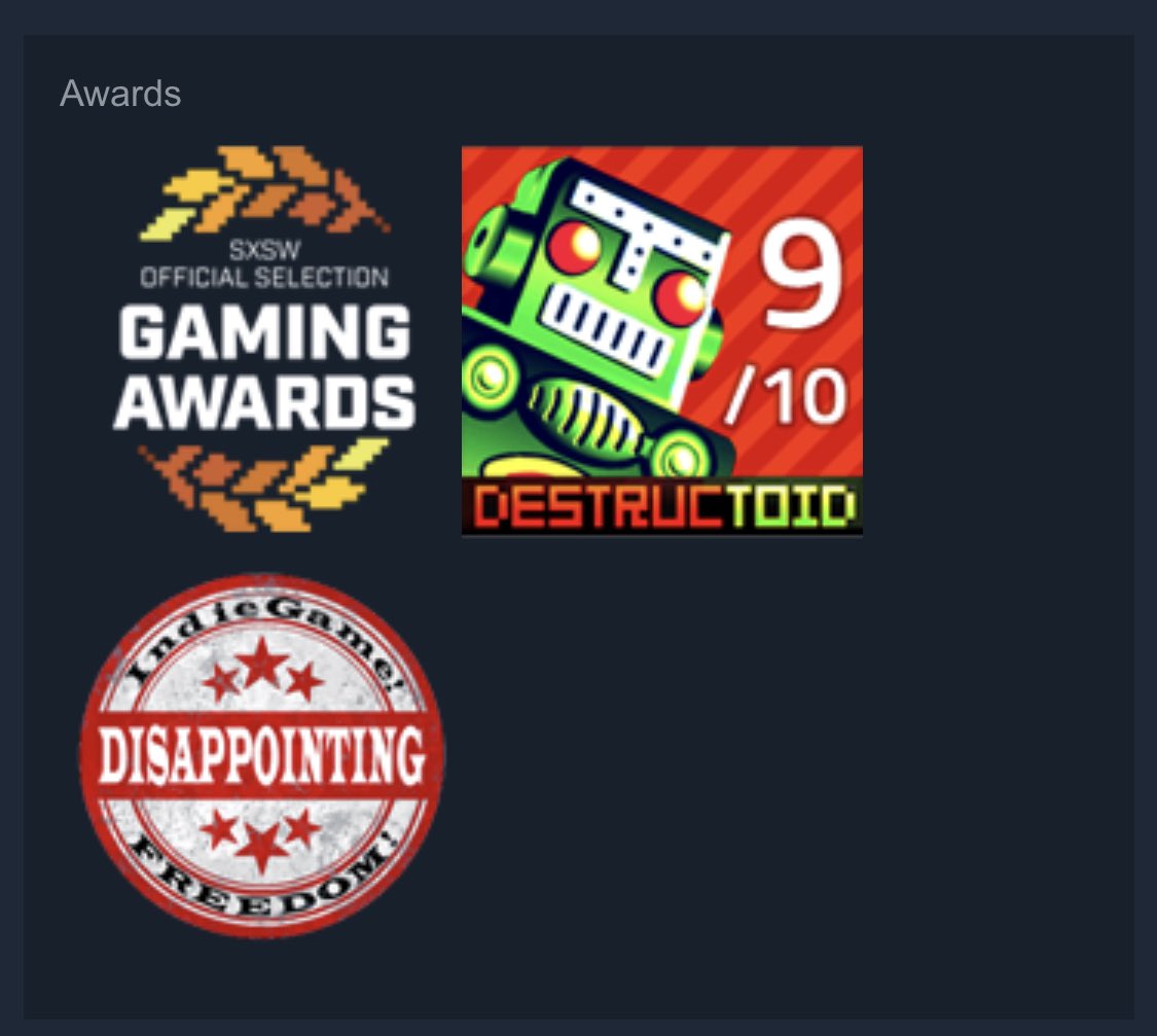 I don’t know if we need this. We already have the prestigious Indie Game Disappointing Freedom award that we got from some blog I found.pic.twitter.com/iijv9TlWAP