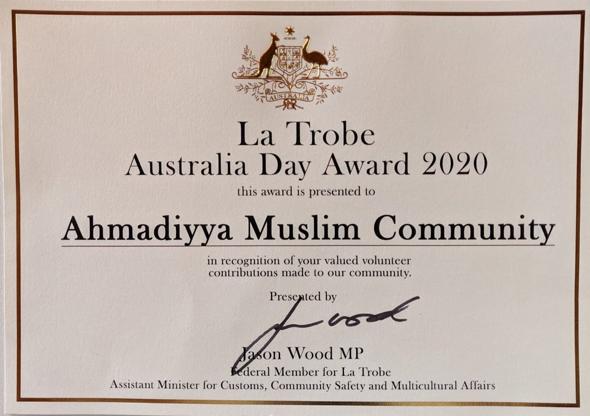 @JasonWood_MP for presenting Australia Day Award 2020 to Ahmadiyya Muslim Community in recognition of outstanding achievements during the past year and contribution to the local community. Thank you Australia