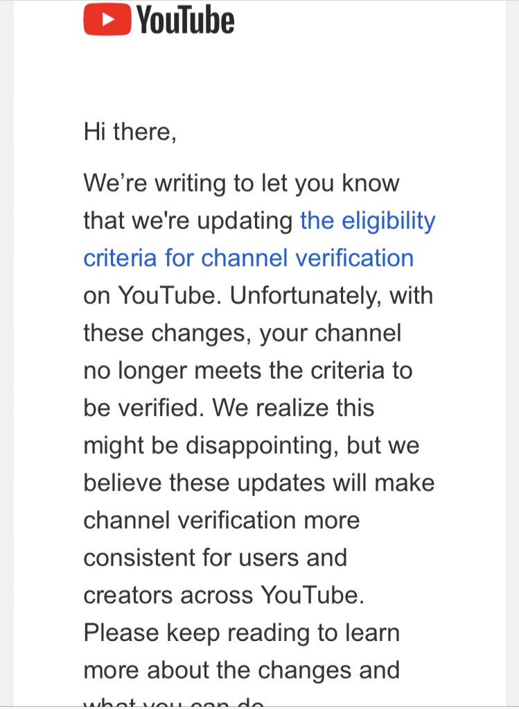 Y’all know how I’ve been dying to get verified on twitter and Instagram? Well I somehow went backwards and now I’m not verified on YouTube. Because 600,000+ people and 7 million monthly viewers isn’t quite popping enough I suppose.pic.twitter.com/Uo4hKjMeZn