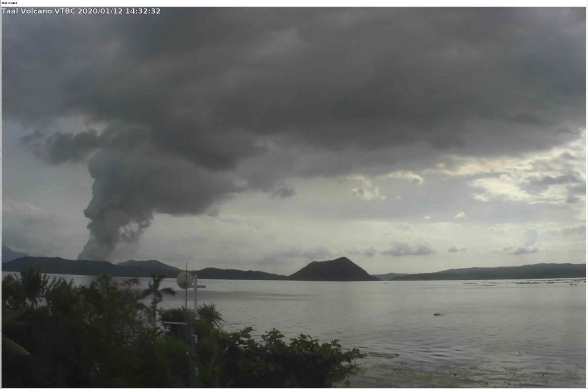 Ongoing phreatic explosion at the Main Crater of Taal Volcano. Photos taken from installed IP camera monitoring the activity of Taal Volcano.pic.twitter.com/9Qyd7aLvsJ