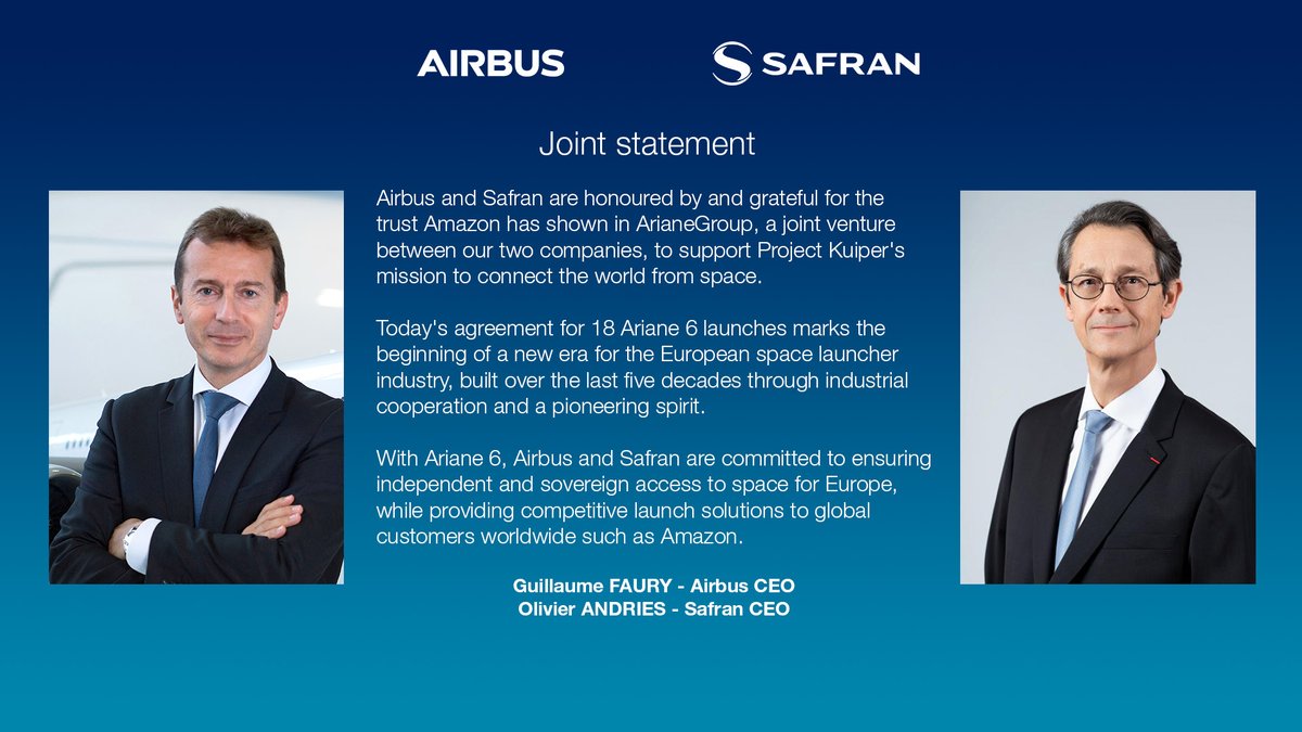 @GuillaumeFaury,@Airbus CEO, and Olivier Andriès,@SAFRAN CEO regarding today's landmark contract announcement from@Arianespace.pic.twitter.com/xZlxOxu2bV