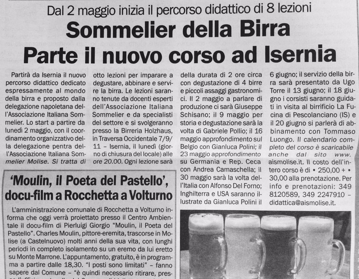 #corsoais#sommelier#birra a Isernia dal 2 maggio con#AisMolise, articolo#quotidianodelmolise del 8/04/2016pic.twitter.com/ANzMoIlwla