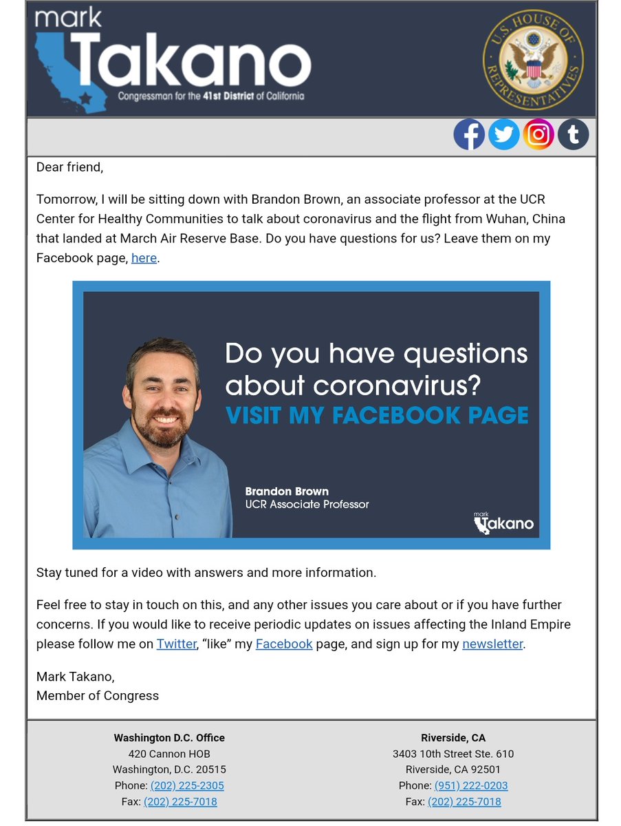 I can assure Riverside County voters that if elected, I would work with the CDC and local officials to ensure there is an open stream of communication, if an event such as this needs to be diverted to March ARB. We need to have 100% transparency.pic.twitter.com/4rDWVWe7y2