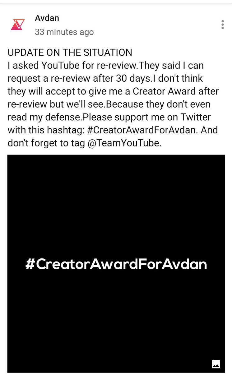 Damn YouTube... . #CreatorAwardForAvdan . @TeamYouTubepic.twitter.com/JiY0dGLOL0