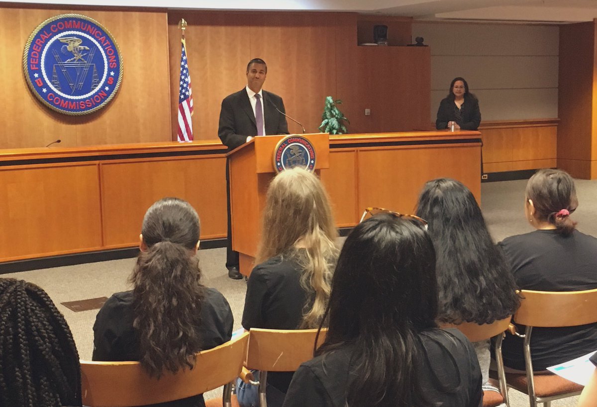 @AjitPaiFCC chats with@GirlsWhoCode. Today’s event is a great opportunity for the@FCC to learn from the next generation of creators, developers and innovators.pic.twitter.com/tdUqcZKqlU