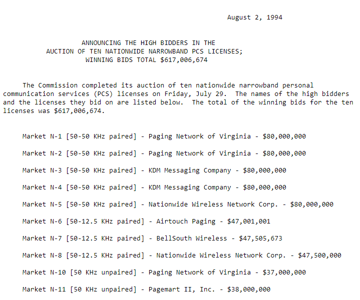 @FCC allocate spectrum licenses through auctions. In 1993, Congress gave us that authority. And 25 years ago today, the 1st@FCC auction began. The auction of nationwide narrowband PCS licenses lasted 5 days and generated $617M in net bids.pic.twitter.com/sKh45w8Z11
