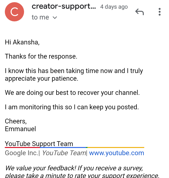 @TeamYouTube from last 3 month I get this email again and again there were no one helping me I again 3 months and I didn't get back my channel I will give all of the things which will require... I made a bank account and give the link to them...plz helppic.twitter.com/W5WjV1ZER1
