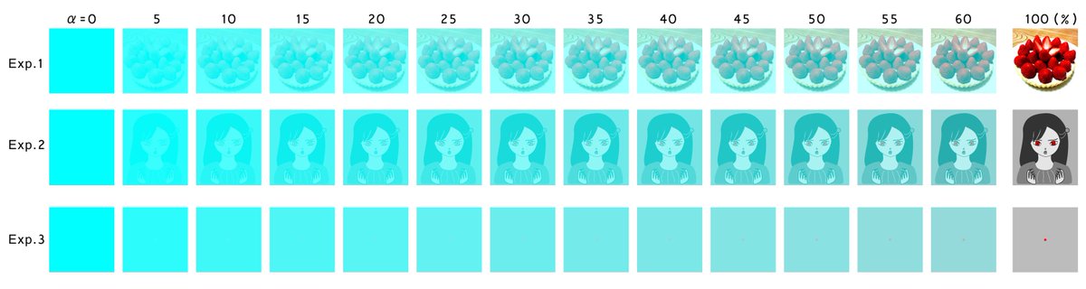 この図では、アルファ値が50以下ですと、理論上は画素に(知覚的な)赤はありません。なお、「RGB値で見ればRはゼロじゃないではないか。インチキだ」と批判する人が一定数いらっしゃいますが、単独なら赤を引き起こす物理的刺激(長波長光)と知覚上の赤とを混同しています。pic.twitter.com/tkSqWd4IIh